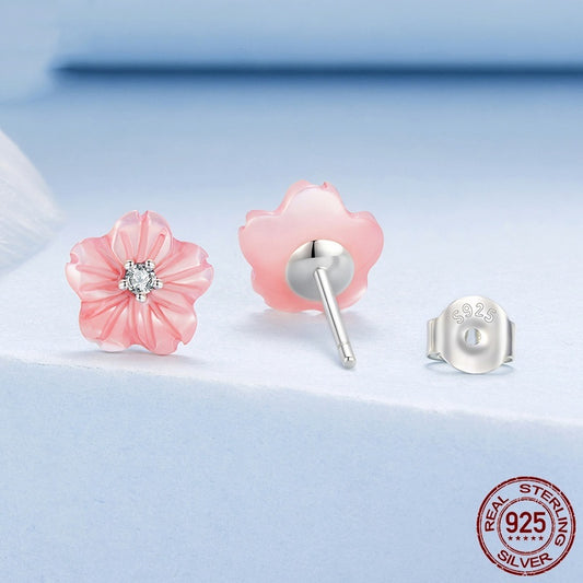 Flower Heart Stud Earrings - S925 Sterling Silver