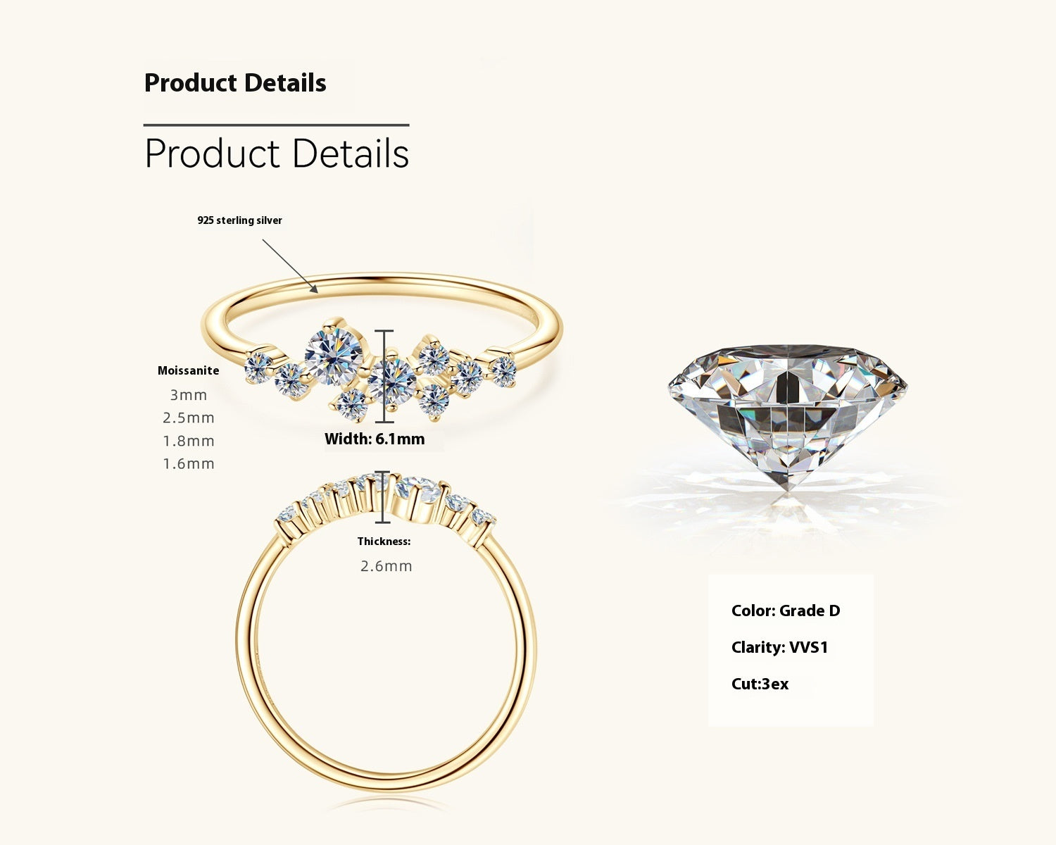 Illuminate your style with this stunning Starry Moissanite Ring - where celestial star design meets brilliant moissanite stones in premium sterling silver for a truly dazzling accessory.
